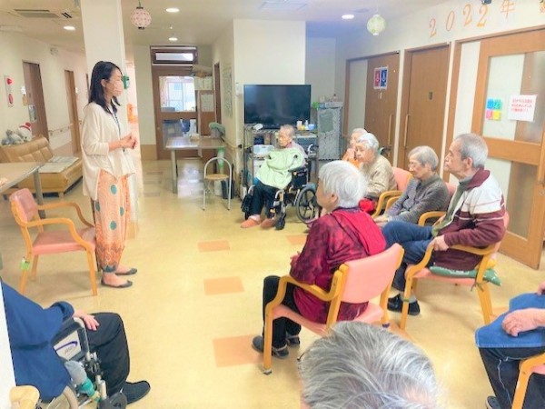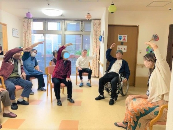 体をほぐすことも大事ですが心がリラックスする効果もありグループホームにとても合っているなぁ。と感じました!みなさんも一体感を感じていたのか普段よりも穏やかな空間となっていたような気がします。ホームにヨガインストラクターがいたらどれだけいいか、、、