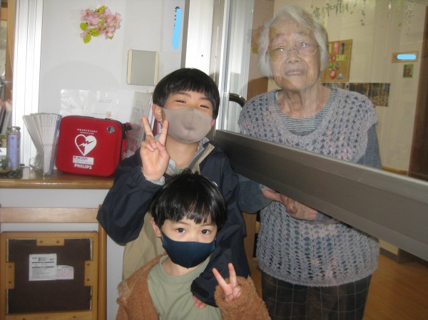 お孫様とひ孫様のガラス越しの面会にウルウルしたひと時でした( ^ω^)・・・ 元気? ここ開かないのよ! と話されていました!! 元気な姿が見られてホットされた瞬間でした!(^^)!