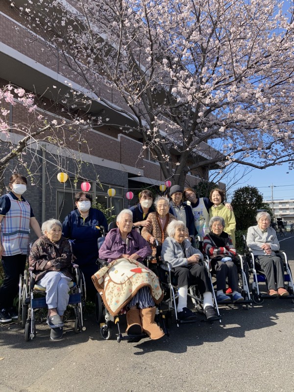 本日はお花見!の予定でしたが、少し肌寒いため集合写真を撮って、おやつは室内で召し上がっていただきました(∩´∀`)∩