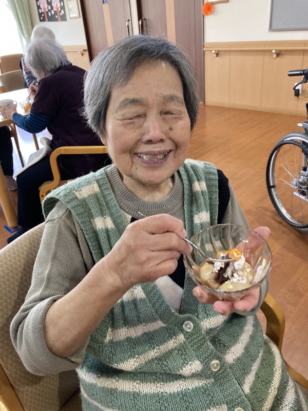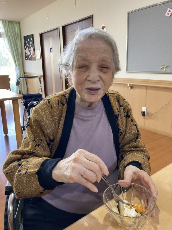 おやつは白玉パフェ♡職員の愛情たっぷりです!!