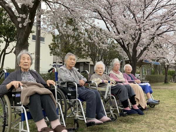 先日 施設の前にある公園の桜が満開になったので 短い時間ですが 入居者様を連れ出してお花見へ行ってきました(*^-^*)