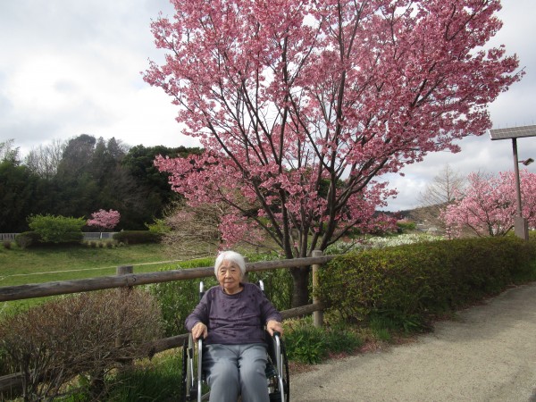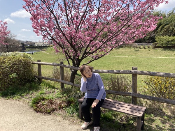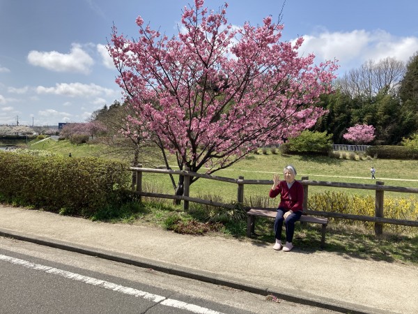 今年もホームの前のオカメ桜が咲きました♪ 濃いピンク色でキレイです(^^)