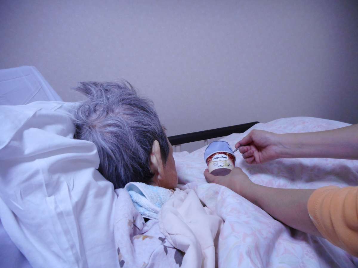 T様は、通常の食事を召し上がることが出来なくなってしまわれたので、現在はお好きなアイスクリームやプリン等を介護職員の介助にて召し上がっております。