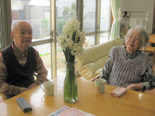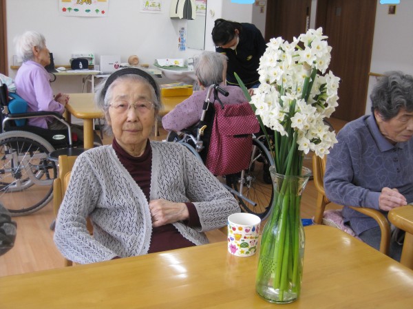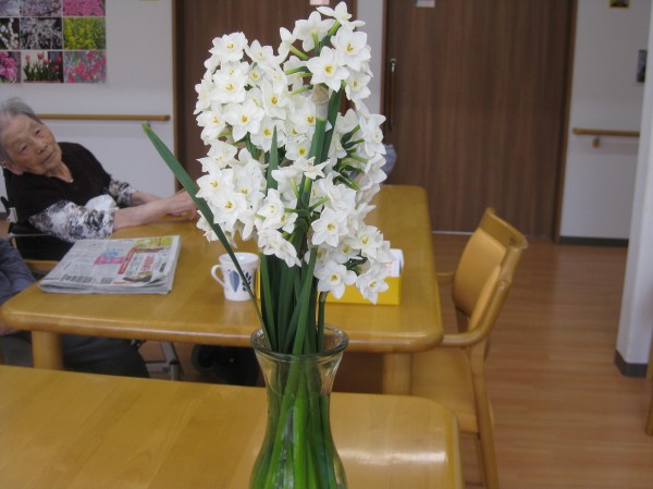 こんにちは!グループホームみんなの家・あきがせの介護ブログです!よろしくお願いいたします。オーナー様から水仙の花いただきました!! 早速花瓶に飾り鑑賞しました( ^ω^)・・・