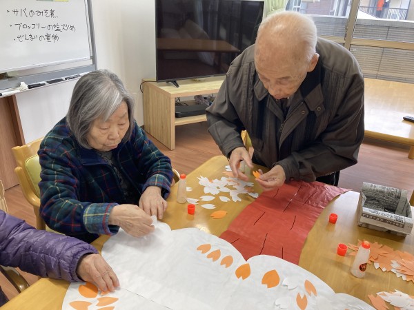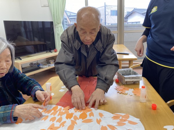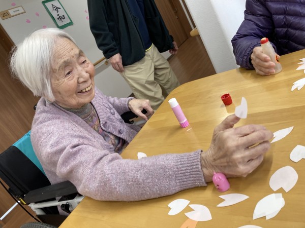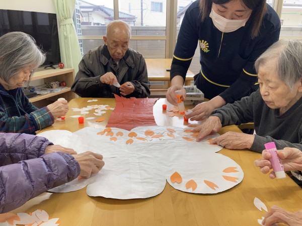 こんにちは!グループホームみんなの家・あきがせの介護ブログです!よろしくお願いいたします。4月は桜ですね・・・ 桜の貼り絵をしました!!
