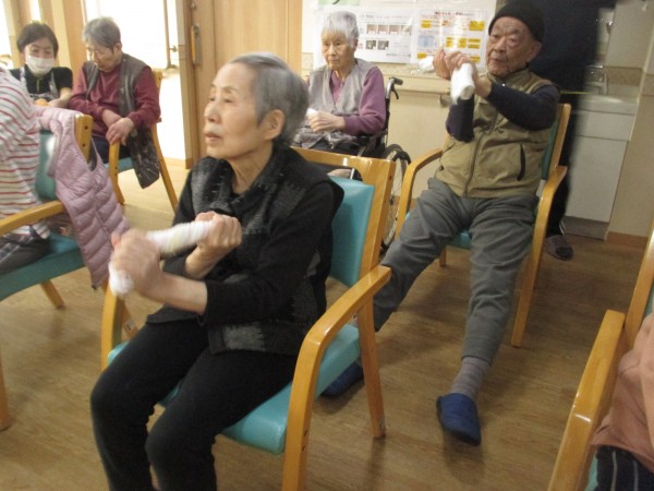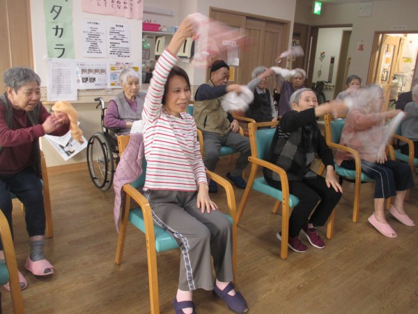 タオルを回したり、歌にあわせて体を動かしたりと楽しく元気に参加されていました。