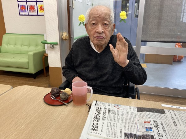 3時のおやつに、入居者様にお手伝いして頂き、おはぎ作りをしました♪