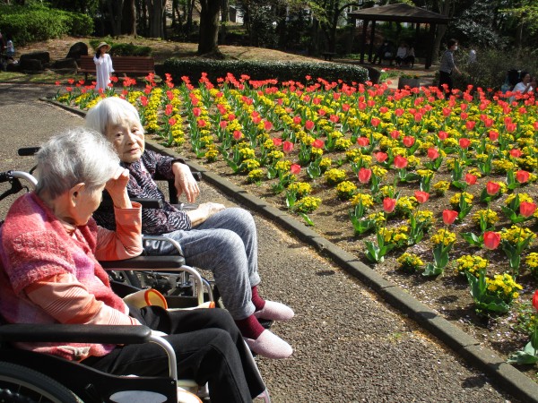 でも 公園は チューリップがたくさん咲いていて
