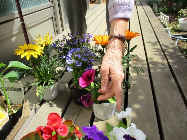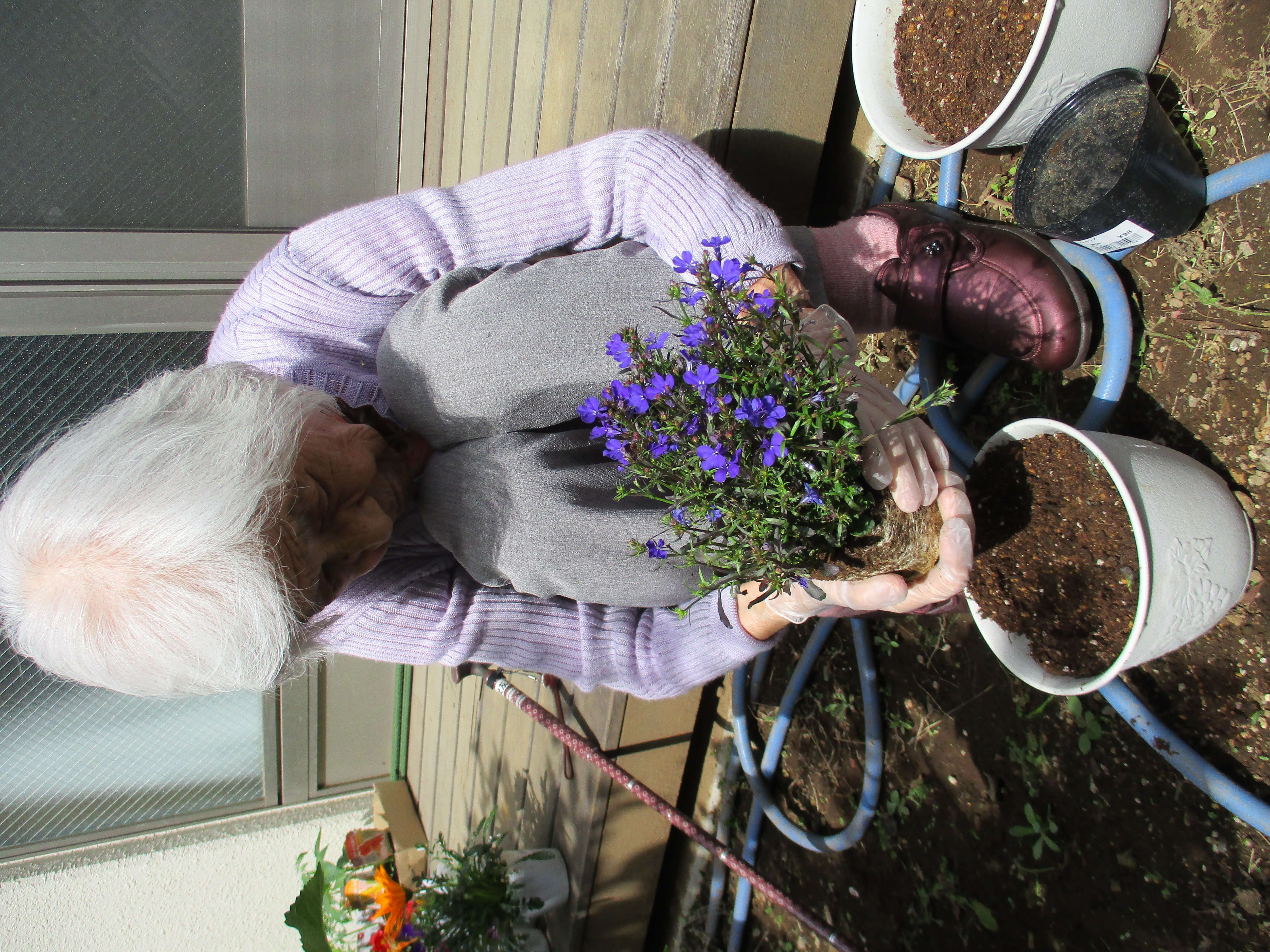 先日スタッフがお花を買ってきてくれたのでN様M様が鉢に植えくれました♫