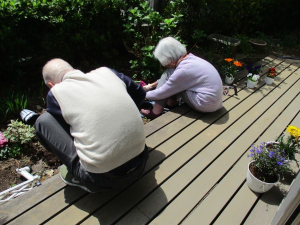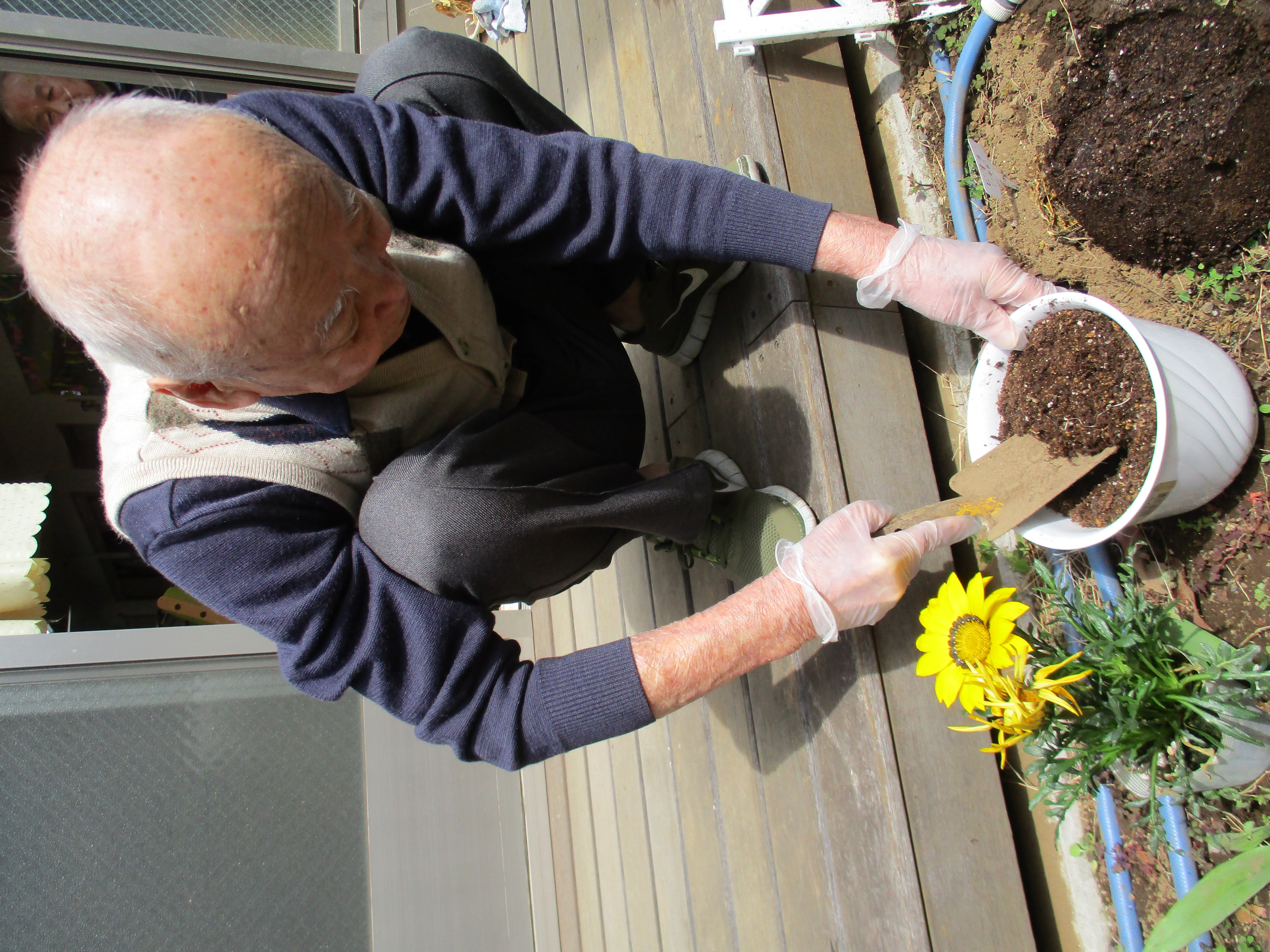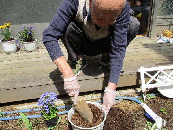 耳を澄ませるとM様鼻歌を歌いながらお花を植えていました♬