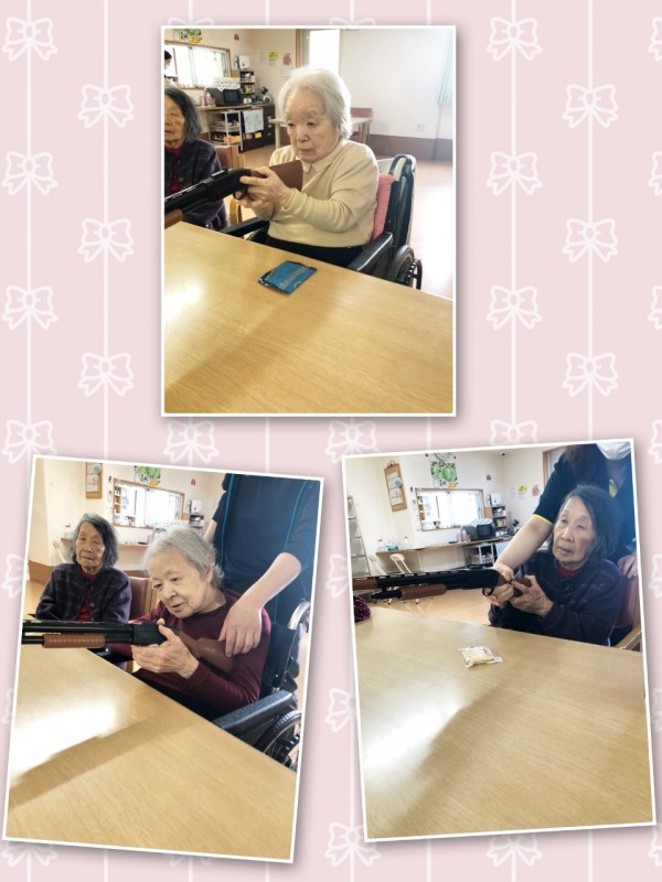 グループホームみんなの家大宮三橋 4月レク(射的) ハンター降臨!?