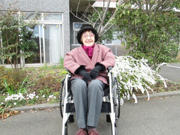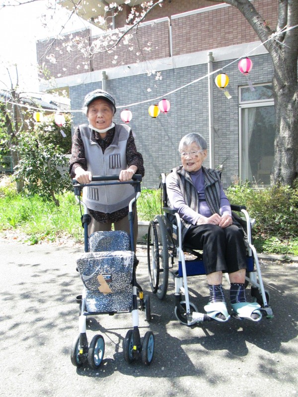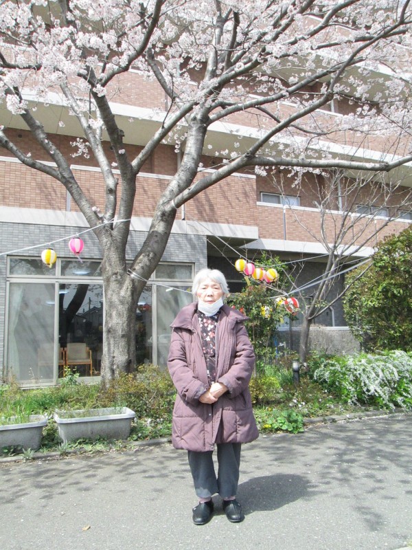 4月になり、すこや家にも桜が咲いたので、桜を見に外気浴へ行きました♪