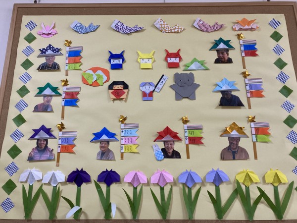 かわいいこいのぼりと兜を作り、飾り付けました。