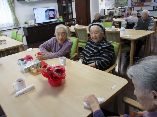 お花を食事の机においてくださり皆様と鑑賞されてました(^o^)