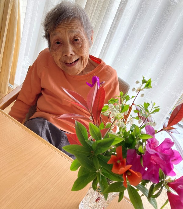 たまたまですが、スタッフがいろんな春の花を持ってきましたので、ご利用者様に生けていただきました。