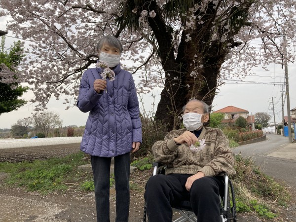 大きな桜の木の下で、今度はお二人ともカメラ目線で写っていただけました。