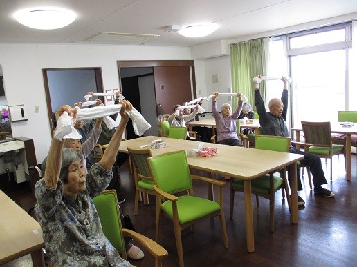 タオルを使い皆様一生懸命に取り組まれていました。