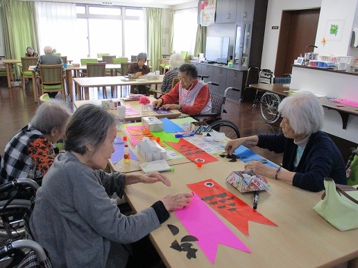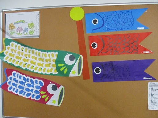 今日は皆で5月のカレンダーの鯉のぼりを作りました(^^)