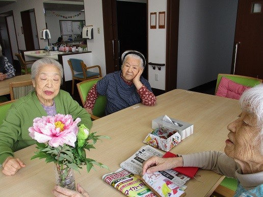 先日スタッフがお家から牡丹の花を持ってきてくれました(^^♪