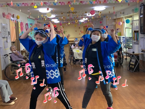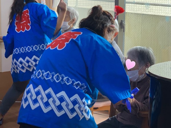 順々にダンスをしたあとは、ご利用者様の元へ行き一緒に楽しみます。