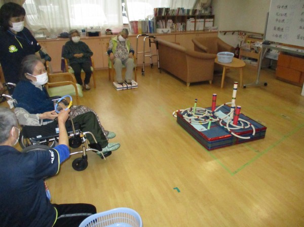 こんにちは!デイサービスセンター遊・西東京です!本日の運動レクリエーションは『輪投げ』です!