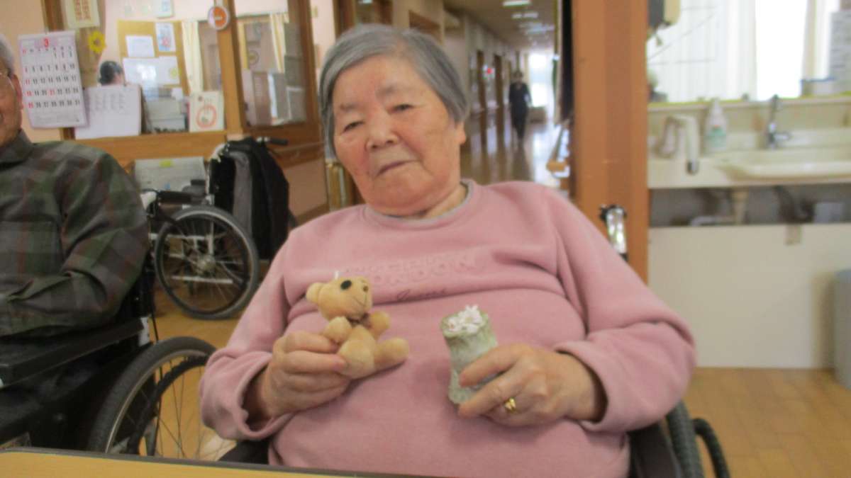 せっかくなので少しお花をお借りして入居者様と記念撮影。皆様「キレイだね」とおっしゃっていました。