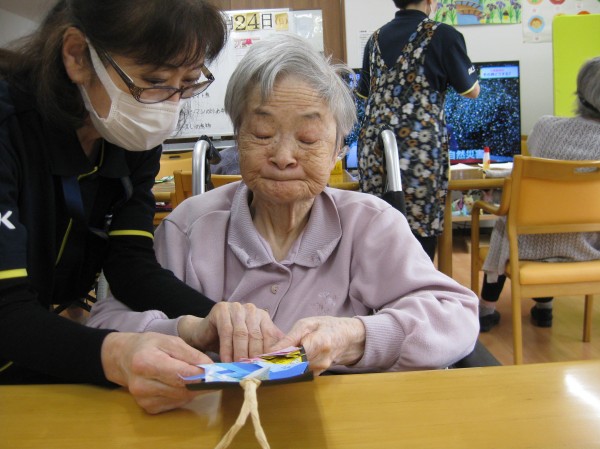 こんにちは!グループホームみんなの家・あきがせの介護ブログです!よろしくお願いいたします。端午の節句に向けて鯉のぼりの短冊を作りました!!