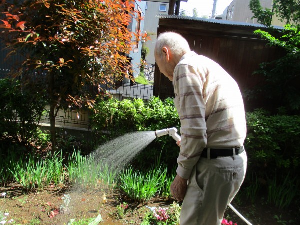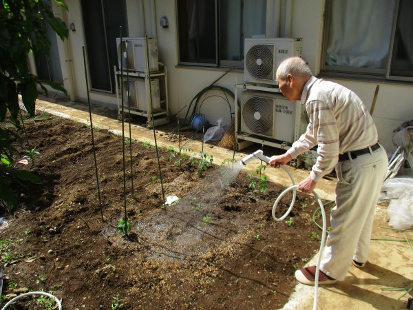 先日植えた苗が気になり 3Fの、M様が遊びに来てくれました。