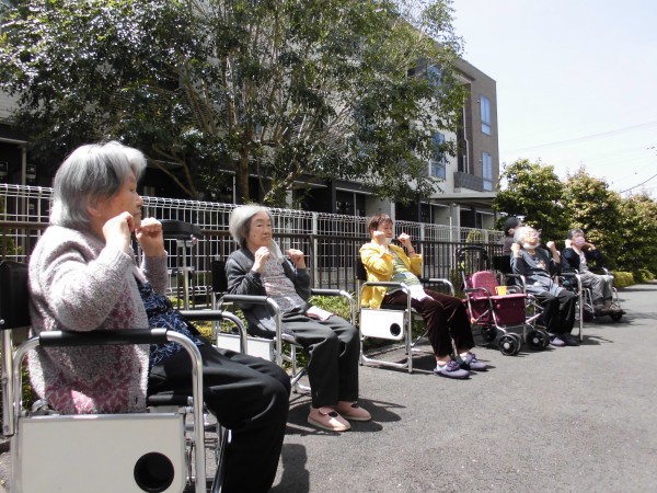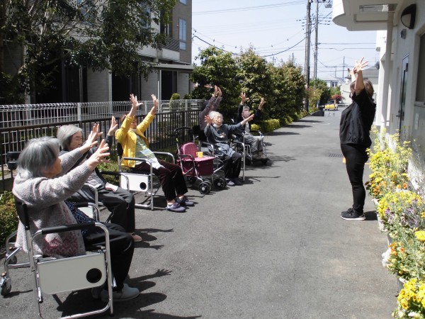 外に出て体操をしてみました。