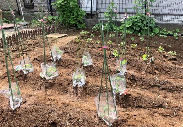 今年もTHE夏野菜定番のナス・きゅうり・トマト・ピーマンを植えていきます。