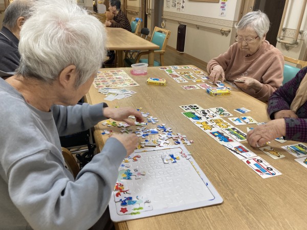 新しいご入居者様を迎え、和やかにパズルやお話をして過ごされてます。