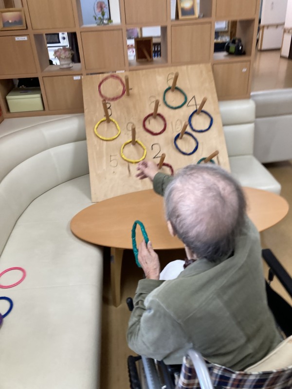 倉庫の奥にありました輪投げ台を引っ張り出し遊んでみましたよ♪