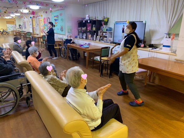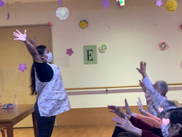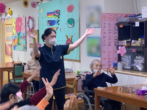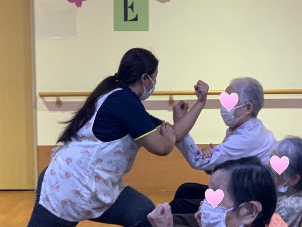 元気な2人の先導に、ご利用者様も元気に体操してくださいます。