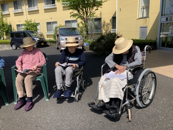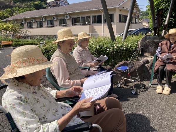 童謡をみんなで歌いのどが慣れたところで、
