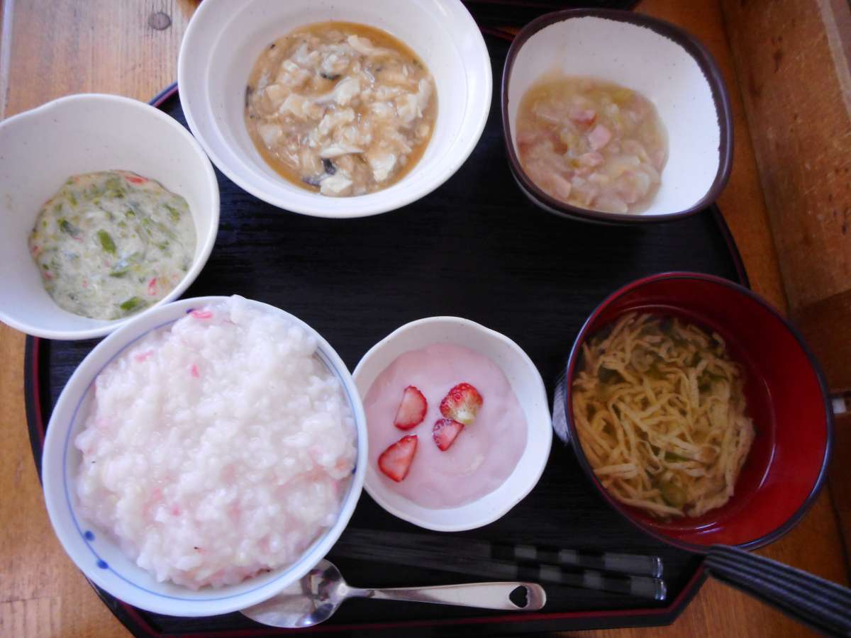 上の写真は、主食がおかゆで副食が極刻み食になっております。