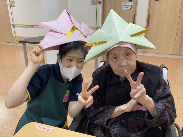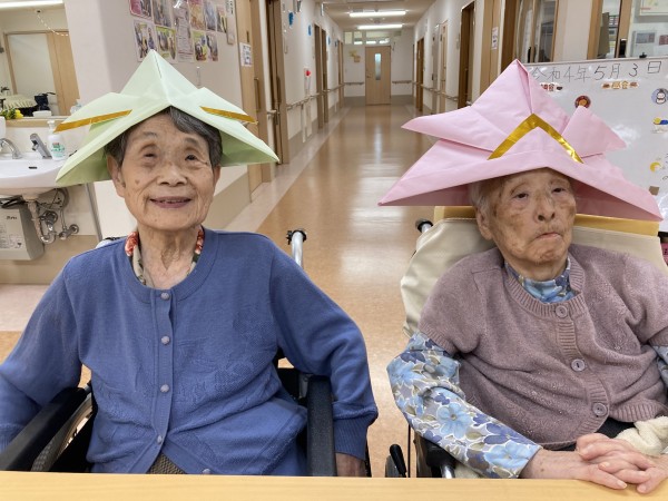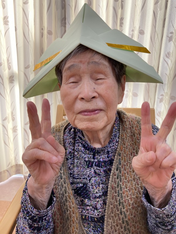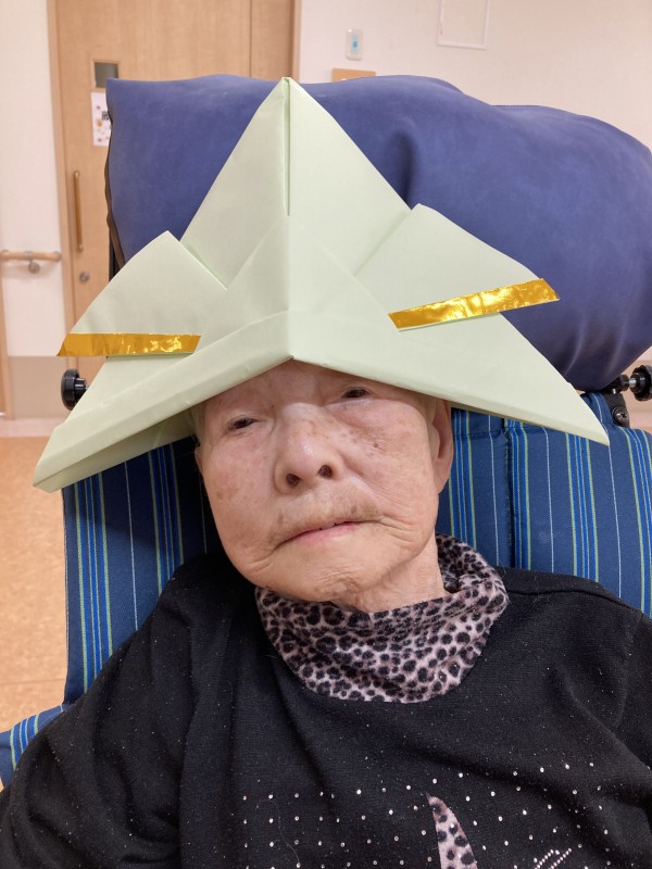 5月の行事(端午の節句)で、兜をかぶり、写真を撮りました。