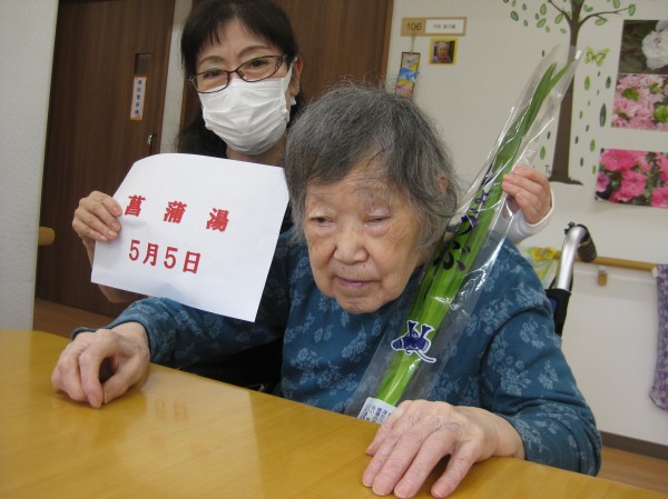 こんにちは!グループホームみんなの家・あきがせの介護ブログです!よろしくお願いいたします。5/5 端午の節句【菖蒲湯】です!!無病息災を祈りお風呂に浮かべる菖蒲。勝負の強い香りが邪気を払うと言われています。今年も菖蒲を浮かべて入浴しました( ^ω^)・・・