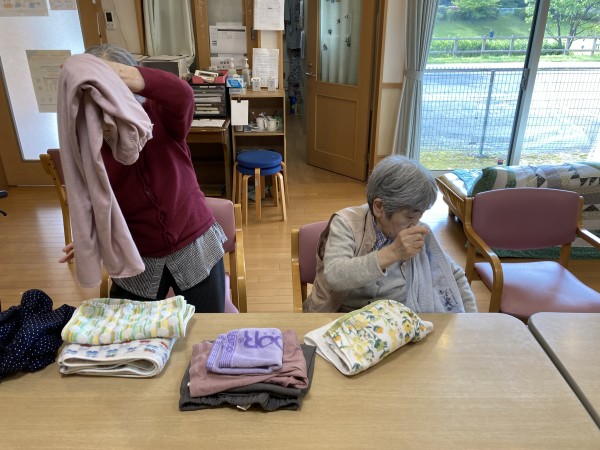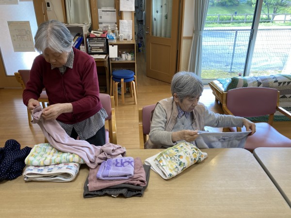 いつも優しくお声掛けくださり、ありがとうございます、職人のようにキレイにたたまれて、積極的にお手伝いをされています。