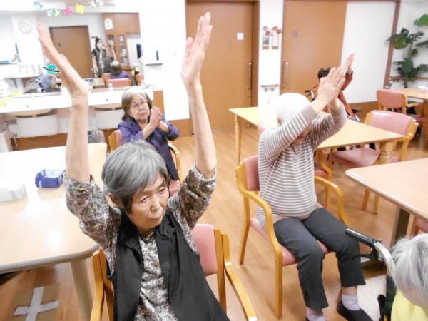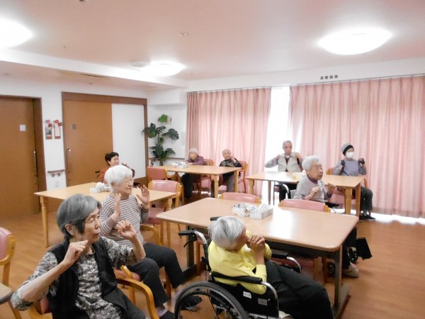 5月6日、2階で1階〜3階の入居者様で リモートALSOK体操をしました!!