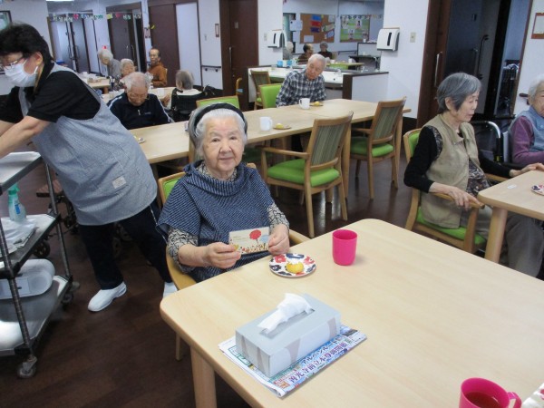 おやつには、生クリームをしぼったおかしを、皆さんで召し上がりました。