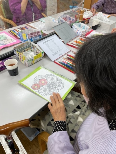 ご利用者お一人お一人専用の塗り絵の本。毎回楽しみです!(^^)!