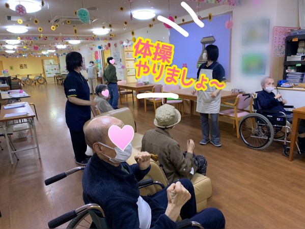 今日も、ご利用者様が体操をされます。