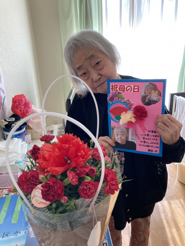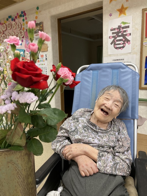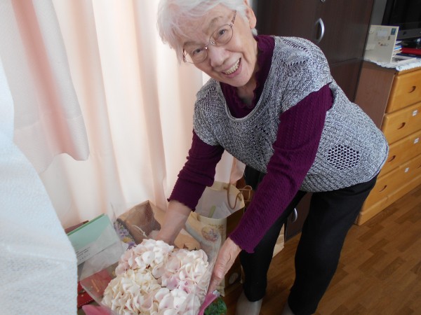届いたお花やプレゼントは、各居室に飾らせて頂いておりますが、ご利用者様のご要望により、「綺麗だからみんなに見てもらいたい。」「フロアに飾ってもらえるといいな。」と、仰って下さる方もいて、また一つフロアや皆様の空気感が温かくなります。