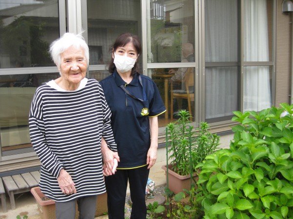 施設のお庭まで出かけました。歩くのが減ったのでフラフラしちゃうね~と話されました( ^ω^)・・・ 毎日室内を歩きましょうとお約束しました(笑)筋力維持していきたいと思います。