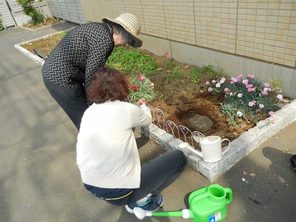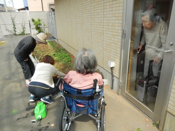 ご利用者さま本人からの熱いご要望もあり、当施設の花壇に植えることにいたしましたぁ(^O^)