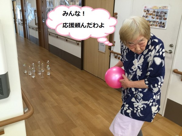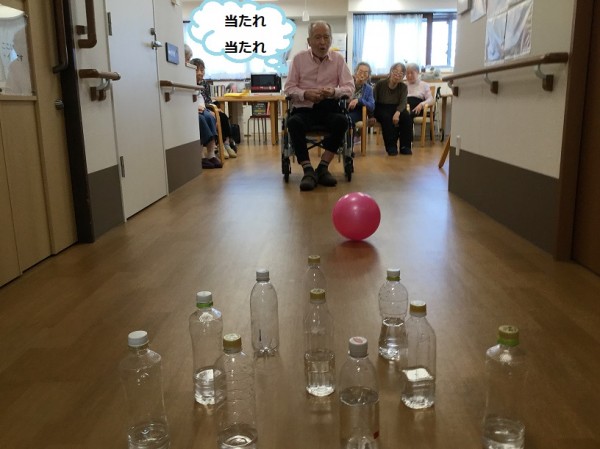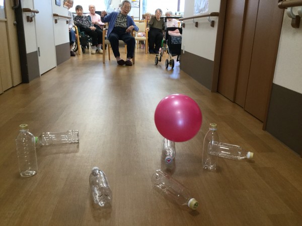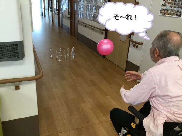 何事かと思いきや、3階の皆さんが長い廊下を使ってボーリングを楽しまれているところでした♪