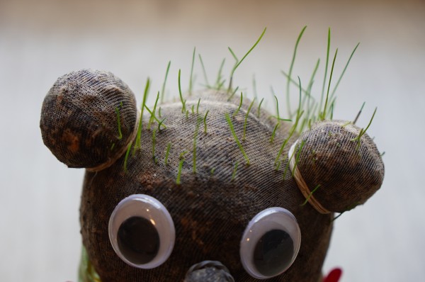 芝人形に毛が生えてきました。