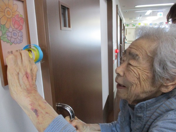 と言いながら ご自分で目玉のシールをはられていました。