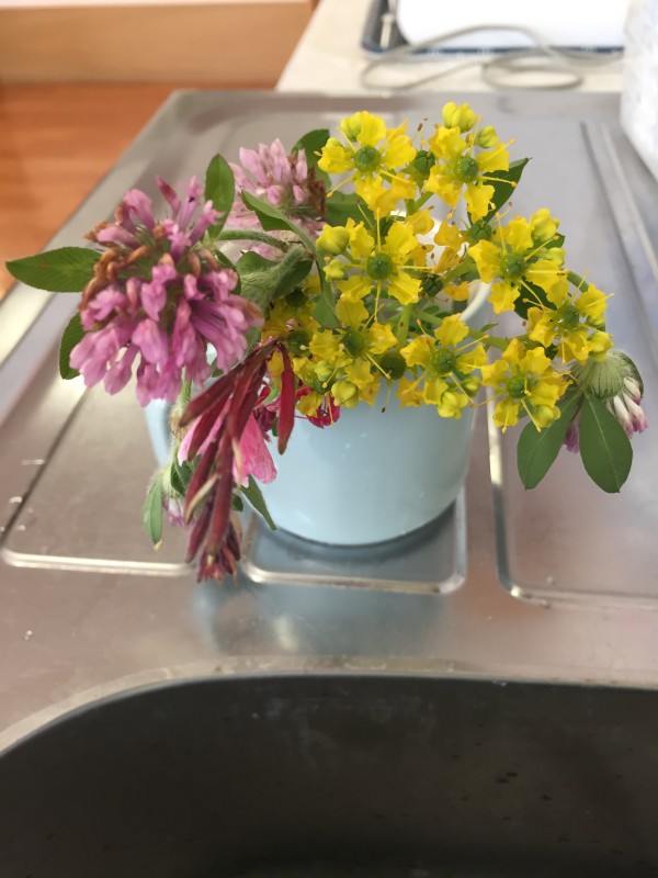野に咲くお花をお土産に持って帰ってきてくれました。