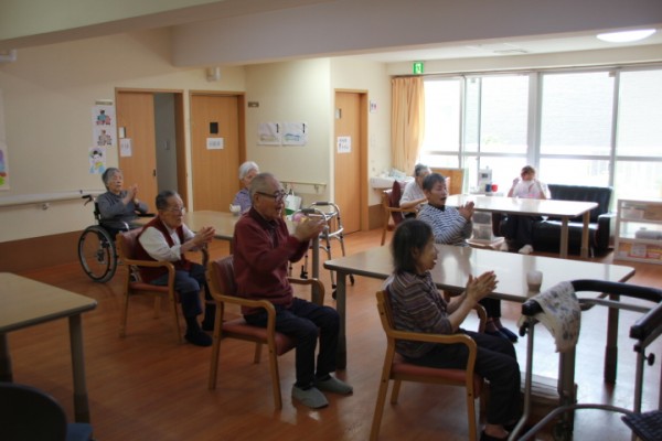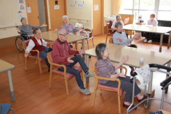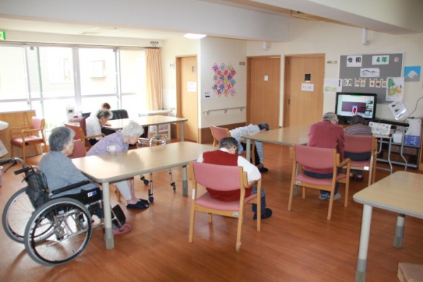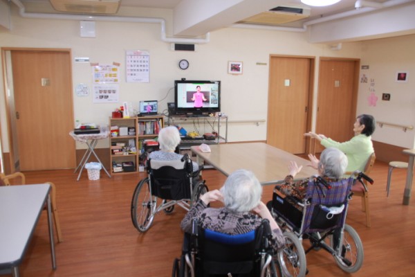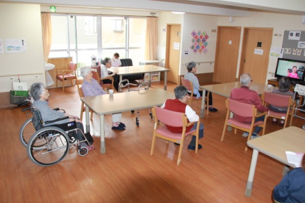 こんにちは!(^_-)-☆ 認知症対応型共同生活介護 グループホームみんなの家 蕨です。本日もリモート・ストレッチ口腔体操に参加されたご様子をブログにしました。ストレッチ口腔体操は、午前中に行われるため、参加できる方は、今日お風呂に入らない方、と順番待ちの方が参加して頂きました。いつもは、2階のホールに2ユニットがそろって参加するのがいつものパターンなのですが、午前中のリモートは、職員も忙しく上から下へ、ご利用者様を下すのが大変なので、今日は、それぞれのユニットでの参加でした。カメラマンも行ったり来たり走りまわりました。皆様朝からのびやかに参加されておりました。今日も写真をたくさん載せてます。ありがとうございました。m(__)m